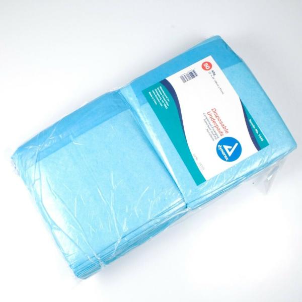 This product includes some polymer, 40-gram weight, and is packaged in clear bags. The pad has moderate absorbency and is not made with natural rubber latex. Underpads are frequently used for those who struggle with incontinence, and for those who are looking to keep their mattress, bedding, and furniture clean and stain-free. Incontinence at night and while seated or lying can cause staining and looming wetness, so an underpad helps to prevent these issues. This blue underpad has a blue back sheet, poly backing, and a nonwoven top sheet. These underpads are disposable.